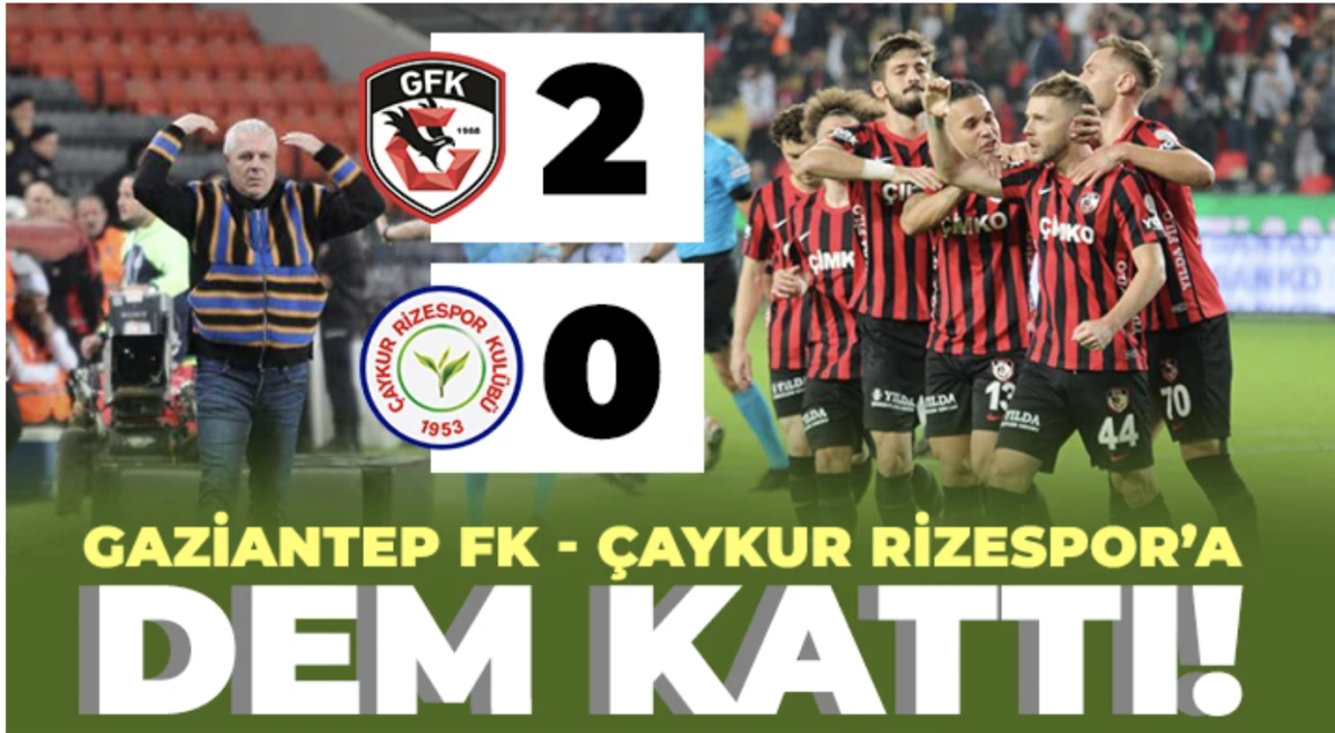 Çaykur Rizespor’u kendi sahasında ağırlayan Gaziantep Futbol Kulübü rakibine 2-0 mağlup ederek üç puanın sahip olurken galibiyeti getiren golleri Maxim ve Dragus imza attı. Gaziantep FK teknik direktörü Marius Sumudica ise gördüğü kırmızı kartla türüne gönderilirken Sumudica’ın kırmızı karttan sonra adeta isyan ettiği gözlendi. Gaziantep futbol kulübü kendi sahasında önemli bir galibiyet elde etti. 90. dk'da Hakem Ali Şansalan mücadeleyi sonlandırıyor. 90. dk'daAli Sansalan taç atışını gösteriyor. Atışı kendi yarı alanından kullanacak ekip Gaziantep FK. 90. dk'da Oyuncu değişikliği! Marius Sumudica oyuncu değişikliğine gidiyor. Gaziantep Stadyumu stadında oyuna giren oyuncu Oğulcan Çağlayan, çıkan oyuncu Max Gradel. 90. dk'da Gaziantep FK takımı oyuncu değişikliği hakkını kullanıyor. Sahadan çıkan oyuncu Denis Dragus, giren oyuncu İlker Karakaş. 90. dk'da Rakip yarı sahada gol arayan Gaziantep FK şimdi taç atışı kullanacak. 85. dk'da Hakem autu gösteriyor. Ev sahibi takım kale vuruşu ile topu oyuna sokacak. 84. dk'da Taç Rizespor takımının. Deplasman Takımı yarı alanından atışı kullanacak. 83. dk'da Gaziantep Stadyumu Stadı'nda oyun kale vuruşu ile tekrar başlayacak. Atışı kullanacak olan takım Gaziantep FK. 81. dk'da Serbest vuruş! Rizespor rakip ceza sahası üzerinden frikik kullanacak. 80. dk'da Oyuncu değişikliği. Oyundan çıkan oyuncu Mithat Pala, oyuna giren oyuncu Pinchi. 80. dk'da Gaziantep FK oyuncu değişikliği hakkını kullanan taraf. Giren oyuncu Jose Brayan Riascos Valencia, çıkan oyuncu Alexandru Maxim. 79. dk'da Top auta çıkıyor. Gaziantep FK oyunu kale vuruşu ile başlatacak. 79. dk'da Rizespor kendi yarı sahasından çıkmaya çalışıyor. Deplasman Takımı taç atışı kullanacak. 77. dk'da Hakem autu gösteriyor. Deplasman Takımı kale vuruşu ile topu oyuna sokacak. 76. dk'da Hakem faul için düdüğünü çalıyor. Deplasman Takımı kendi yarı alanında serbest atış kazanıyor. 76. dk'da Faul! ev sahibi takım rakip sahadan atışı kullanacak. 75. dk'da Sarı kart! deplasman Takımı oyuncusu Casper Hojer sarı kart görüyor. 75. dk'da Hakem faul için düdüğünü çalıyor. Ev sahibi takım kendi yarı alanında serbest atış kazanıyor. 74. dk'da Maçın hakemi, sarı kartını Florin Nita için kullandı. 73. dk'da Hakem Ali Sansalan düdüğünü çalıyor ve ev sahibi takım yarı alanında faul veriyor. Gaziantep FK kendi yarı sahasından atışı kullanacak. 71. dk'da Oyuncu değişikliği! Gaziantep Stadyumu stadında oynanan maçta Rizespor oyuncu değiştiriyor. Sahaya giren oyuncu Mame Mor Faye, sahayı terk eden oyuncu Martin Yankov Minchev. 70. dk'da Hakem serbest atışa karar veriyor. Gaziantep FK atışı kendi yarı sahasından kullanacak. 70. dk'da Maçın hakemi Ali Sansalan, Rizespor takımı lehine köşe atışı kararı verdi. 68. dk'da Gaziantep Stadyumu Stadı'nda ev sahibi takım rakip yarı sahada taç atışı kazanıyor. 67. dk'da Gaziantep FK takımında tedavisi tamamlanan Papy Djilobodji tekrar sahada. 66. dk'da Gaziantep FK rakip yarı sahada gol arıyor. Ev sahibi takım şimdi taç atışını kullanacak. 66. dk'da Gaziantep FK takımında Papy Djilobodji sakatlık geçiriyor. Maç oyuncunun tedavisi için durdu. 63. dk'da Frikik! Rizespor atağında hakem serbest vuruş kararı veriyor. Gaziantep FK kalesinde tehlike! 62. dk'da Taç. Kullanacak takım Rizespor. Gaziantep FK yarı sahasında gol için yüklenen deplasman Takımı taç atışını kullanacak. 61. dk'da Gaziantep FK kendi yarı sahasında serbest atış kazanıyor. 60. dk'da Gaziantep Stadyumu stadında, Rizespor takımı şimdi sol taraftan köşe vuruşu kullanacak. 58. dk'da Ali Sansalan taç atışını gösteriyor. Atışı kendi yarı alanından kullanacak ekip Gaziantep FK. 58. dk'da Oyuncu değişikliği. Gustavo Sauer sahadan çıkan oyuncu, Aldolfo Gaich maça dahil olan oyuncu. 58. DK'da Oyuncu değişikliği! Rizespor takımında giren oyuncu Dal Varesanovic, çıkan oyuncu Jonjo Shelvey. 58. dk'da Oyuncu değişikliği! Rizespor takımında oyuncuğu değişikiği. Giren oyuncu Casper Hojer , çıkan oyuncu Halil İbrahim Pehlivan. 58. dk'da Ali Sansalan taç atışını gösteriyor. Atışı kendi yarı alanından kullanacak ekip Gaziantep FK. 56. dk'da Ali Sansalan Rizespor için taç atışını işaret ediyor. Deplasman Takımı Gaziantep FK yarı sahasına yerleşmiş durumda. 52. dk'da Gaziantep Stadyumu Stadı'nda Rizespor atağı. Kafayı vuran ancak isabet bulamayan oyuncu Ibrahim Olawoyin Olasunkanmi. 51. dk'da Deplasman Takımı rakip sahada gol arıyor. Kazanılan taç atışı ile rakip ceza sahasına girmeye çalışacak olan ekip Rizespor. 50. dk'da Ali Sansalan Gaziantep FK yarı sahasında ceza alanı hizasında taç atışını gösteriyor. Rizespor atışı kullanacak taraf. 49. dk'da Gol! Gaziantep FK golü bulan taraf. Skor şimdi 2-0. Golün sahibi Denis Drăguș 48. dk'da Top auta çıkıyor. Gaziantep FK oyunu kale vuruşu ile başlatacak. 47. dk'da Ali Sansalan Rizespor için taç atışını işaret ediyor. Deplasman Takımı Gaziantep FK yarı sahasına yerleşmiş durumda. 46. dk'da Rizespor rakip ceza sahası etrafında gol arıyor. Deplasman Takımı şimdi taç atışı kullanacak. 45. dk'da Sarı kart! Ali Sansalan elini cebine attı ve sarı kartını Gaziantep FK takımının oyuncusu Denis Dragus için kullandı. 45. dk.'da Ali Sansalan Rizespor lehine frikik veriyor. Deplasman Takımı kendi yarı sahasında atışı kullanacak. 45. dk'da Ve Ali Sansalan Gaziantep Stadyumu Stadı'nda ilk yarının bitiş düdüğünü çalıyor. 45. dk'da Rizespor Gaziantep FK yarı sahasında faul kazanıyor. 44. dk'da Oyun sakatlık dolayısı ile durmuş durumda. Denis Dragus sakatlık geçiren isim. 40. dk'da Sarı kart! Papy Djilobodji sarı kart görüyor. Maçın geri kalan süresinde daha dikkatli