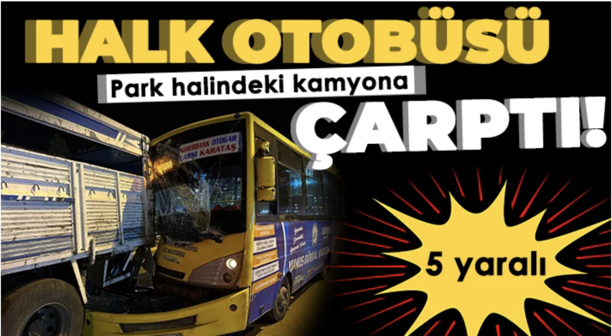 Halk otobüsü park halindeki kamyona çarptı: 5 yaralı