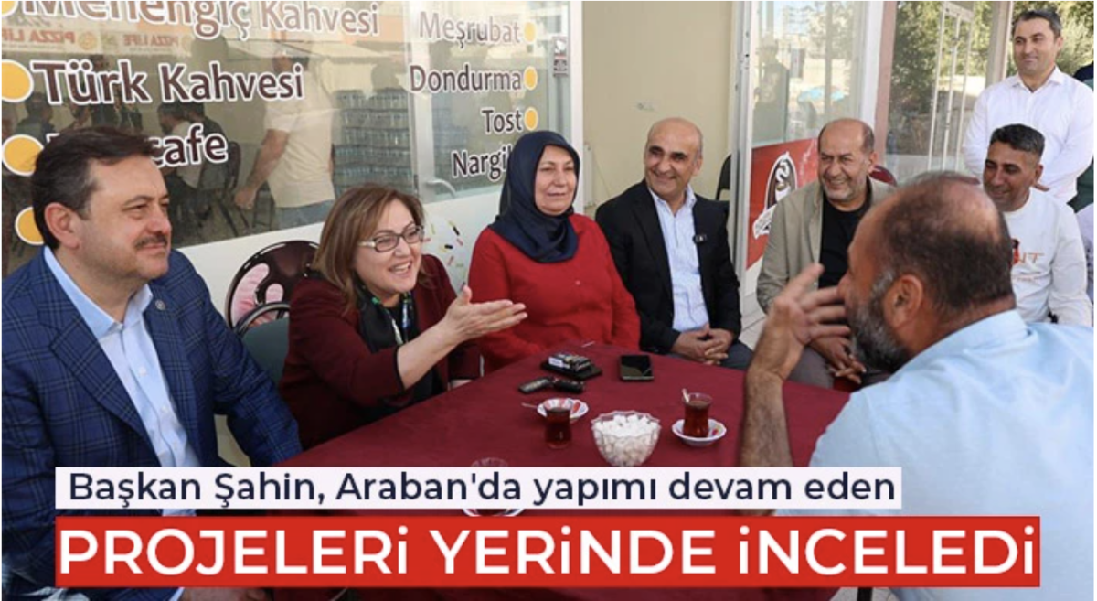 Gaziantep Büyükşehir Belediye Başkanı Fatma Şahin, Araban için projelendirilen ve yapımı devam eden projelerin şantiyelerini ziyaret edip bilgiler aldı. Şahin ve beraberindeki heyet, Araban ilçesinde Sanat ve Meslek Eğitim Kurslarının yer alacağı (GASMEK) binasının inşaatı ve devam eden diğer projeleri inceledi. Şahin, büyükşehir tarafından yapılan projeleri inceledikten sonra esnaf ziyaretlerinde bulundu.