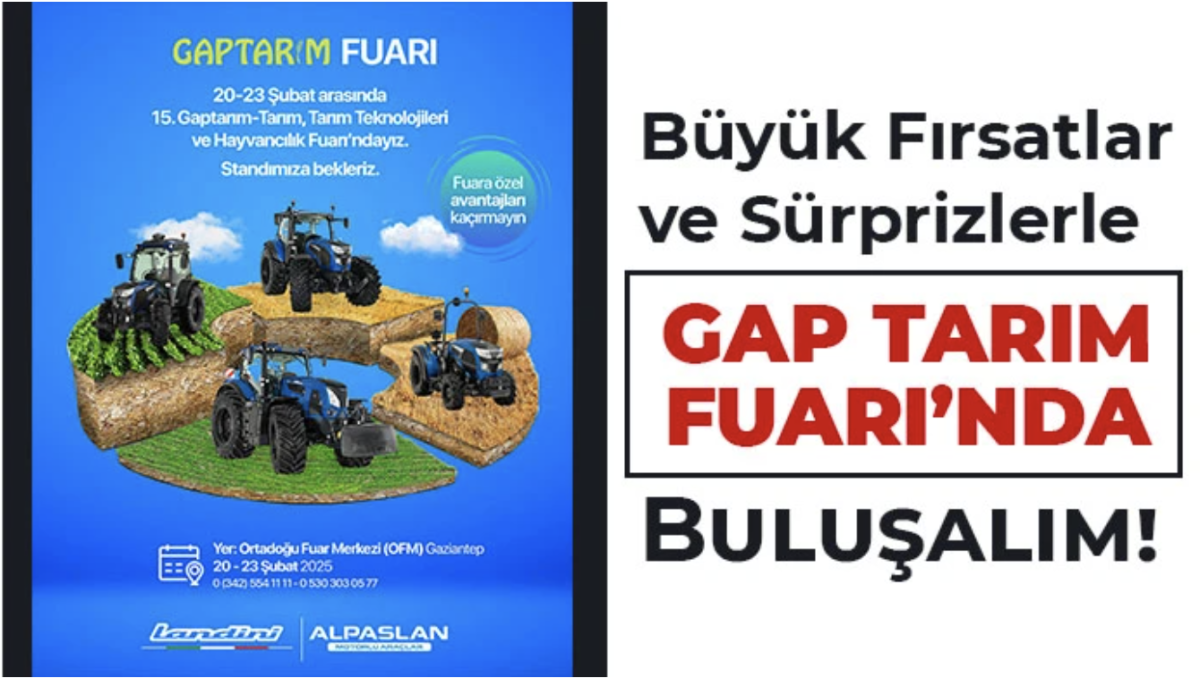 Türkiye’nin en önemli tarım fuarlarından biri olan GAP Tarım Fuarı, 20-23 Şubat tarihleri arasında Ortadoğu Fuar Merkezi'nde tarım sektörünün öncü firmalarını bir araya getiriyor. ALPASLAN GROUP LANDİNİ BAYİİ, fuar merkezinin tam girişinde, soldaki standında, çiftçilere ve tarım sektörü temsilcilerine özel fırsatlar ve sürprizlerle dolu bir deneyim sunmaya hazırlanıyor. Mehmet Alpaslan: “Çiftçilerimizle Buluşmaya Hazırız” ALPASLAN GROUP LANDİNİ BAYİİ Yönetim Kurulu Başkanı Mehmet Alpaslan, fuarla ilgili yaptığı açıklamada, tarım sektörüne sundukları yenilikçi çözümleri çiftçilerle buluşturacaklarını belirterek şunları söyledi: "GAP Tarım Fuarı, tarım sektörünün en dinamik buluşma noktalarından biri. Biz de Landini marka traktörlerimiz ve modern tarım makinelerimizle çiftçilerimizin yanında olmaya devam ediyoruz. 20-23 Şubat tarihleri arasında Ortadoğu Fuar Merkezi'nde, fuar girişinin hemen solundaki standımıza tüm çiftçilerimizi bekliyoruz. En yeni traktör modellerimizi tanıtacak, çiftçilerimizin ihtiyaçlarına yönelik çözümler sunacağız. Özel kampanyalar ve sürpriz fırsatlarla fuarda olacağız." Landini Traktörlerinde Son Teknoloji Fuara katılan ziyaretçiler, Landini marka traktörlerin en yeni modellerini yakından inceleme fırsatı bulacak. Güçlü motor performansı, düşük yakıt tüketimi ve yüksek dayanıklılığıyla dikkat çeken Landini traktörleri, tarımsal üretimi daha verimli hale getirmek isteyen çiftçiler için ideal çözümler sunuyor. Fuar Alanı: Ortadoğu Fuar Merkezi – Girişin Hemen Solunda Fuar Tarihleri: 20-23 Şubat Özel Fırsatlar ve Kampanyalarla Sizleri Bekliyoruz! Siz de ALPASLAN GROUP LANDİNİ BAYİİ standına uğrayarak en yeni tarım teknolojilerini keşfedebilir, özel fırsatlardan faydalanabilirsiniz!