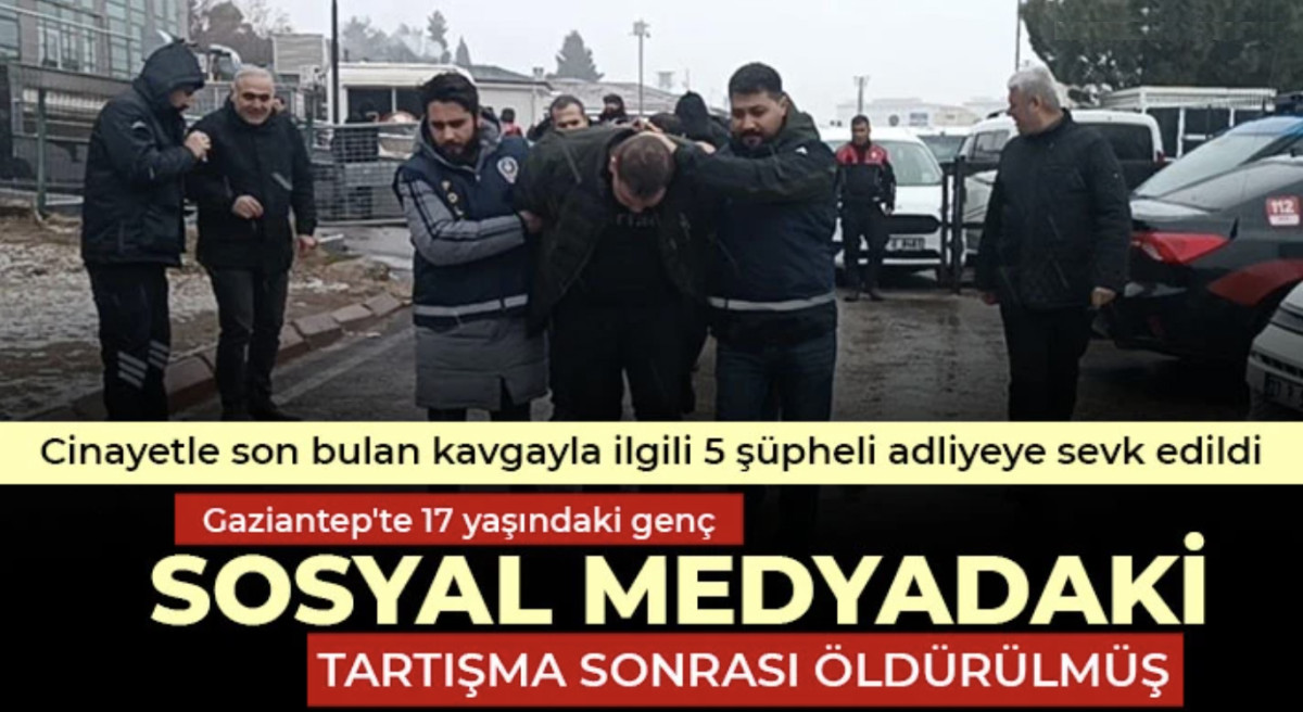 Gaziantep'te 17 yaşındaki gencin bıçaklanarak öldürüldüğü kavgayla ilgili gözaltına alınan 5 şüpheli adliyeye sevk edildi. Cinayetle son bulan kavganın sosyal medyadaki tartışma sonrası yaşandığı ortaya çıktı.