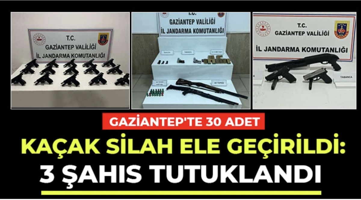 Gaziantep'te silah kaçakçılığına yönelik operasyonda 30 adet kaçak silah ele geçirilirken gözaltına alınan 17 şüpheliden 3'ü tutuklandı.