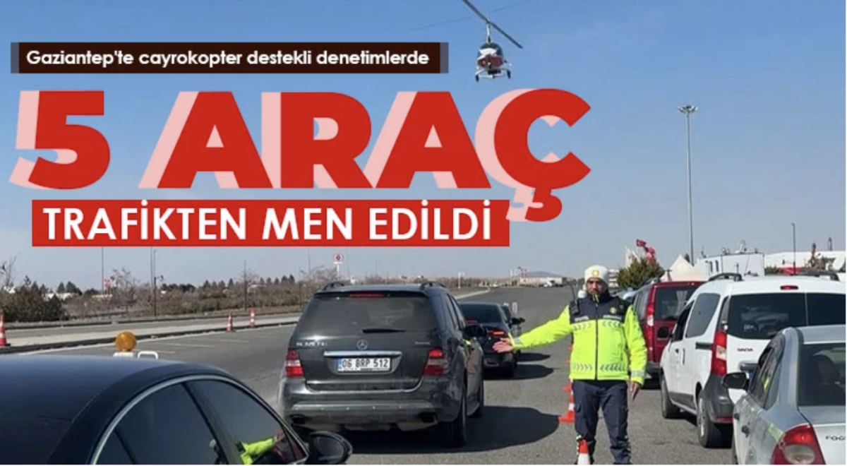 Gaziantep'te cayrokopter destekli denetimlerde 5 araç trafikten men edildi