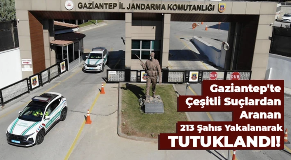 Gaziantep'te jandarma ekiplerince Ocak ayında yapılan 'çember' operasyonlarında çeşitli suçlardan aranan 213 şahıs yakalandı. Adli mercilere sevk edilen şahısların hepsi tutuklandı.