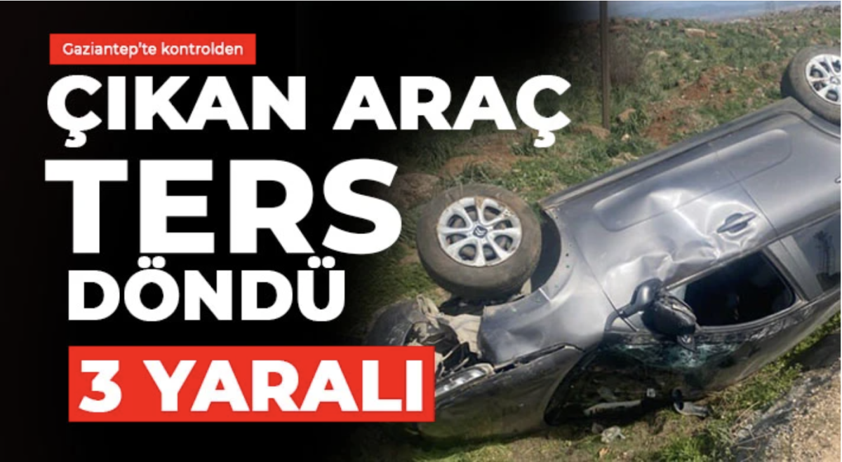Gaziantep’te kontrolden çıkan araç ters döndü: 3 yaralı