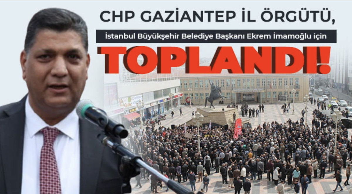 CHP Gaziantep İl Örgütü, İstanbul Büyükşehir Belediye Başkanı Ekrem İmamoğlu ve çalışma arkadaşlarının şafak operasyonu ile gözaltına alınmasını basın açıklaması ile protesto etti.