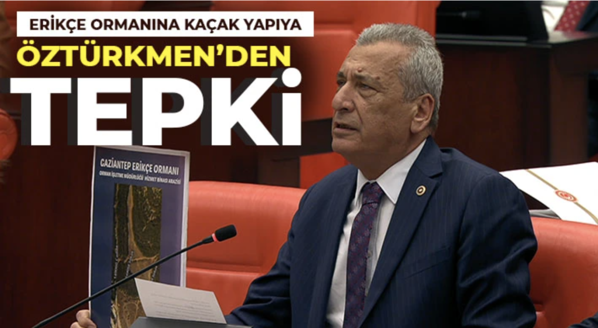 TBMM’de konuşan Öztürkmen, ormanları korumakla görevli müdürlüğün orman arazisine kaçak yapı yapmasının bölgede başka yapıların önünü açacağı konusunda uyardı. Öztürkmen’in açıklaması şu şekilde. Gaziantep’in ciğerleri konumundaki Erikçe ormanının yapılaşmaya açılacağı iddiaları endişe yaratıyor. Ormanları korumakla mükellef olan Orman İşletme Müdürlüğü’nün Erikçe ormanının kalbine hizmet binası yapma projesi, binlerce ağacın kesilmesine, orman arazisinin imara açılmasına neden olacak. Burası orman arazisi. Yapılaşma olamaz. Bir çivi bile çakılamaz. Buna rağmen Gaziantep Orman İşletme Müdürü’nün ruhsatsız bir şekilde inşaata başlaması kabul edilemez. Erikçe Kent Ormanı, insanların elleriyle diktiği ağaçlarla oluşmuştur. Erikçe ormanı onlarca kuş türüne, yüzlerce hayvan türüne ev sahipliği yapmaktadır. Gazianteplilerin de hafta sonu nefes aldığı, piknik yaptığı saklı bir bahçedir. Orman İşletme Müdürlüğü’nü, ormanları yapılaşmaya açmak yerine korumaya, yetkilileri bu kaçak yapıyı durdurmaya çağırıyorum.