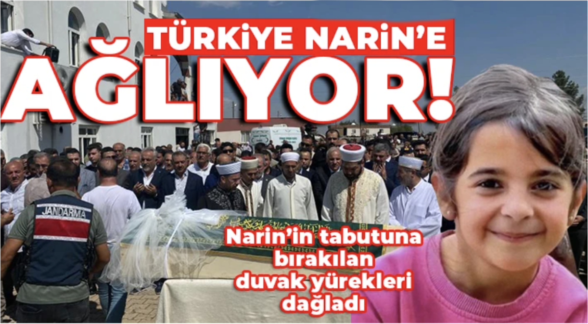 Diyarbakır'ın Bağlar ilçesi Tavşantepe Mahallesi’nde 21 Ağustos tarihinde Kur'an-ı Kerim kursundan eve dönerken kaybolan ve 19 günlük arama çalışmalarının ardından köyden yaklaşık 3 kilometre uzaklıkta bulunan Eğertutmaz deresi kenarında çuvalın içinde ölü olarak bulunan Narin Güran'ın cansız bedeni Adli Tıp Kurumunda yapılan incelemelerin ardından ailesine teslim edildi. Narin Güran’ın cenazesi, Batıkarakoç Mahallesi'nde kılınan cenaze namazının ardından defnedilmek üzere Tavşantepe köyü mezarlığına götürüldü. Cenaze namazına Diyarbakır Valisi Murat Zorluoğlu, İl Jandarma Komutanı Tümgeneral Selçuk Yıldırım, Emniyet Müdürü Fatih Kaya, AK Parti İl Başkanı Raşit Ocak, siyasi parti ile STK temsilcileri ve çok sayıda vatandaş katıldı.