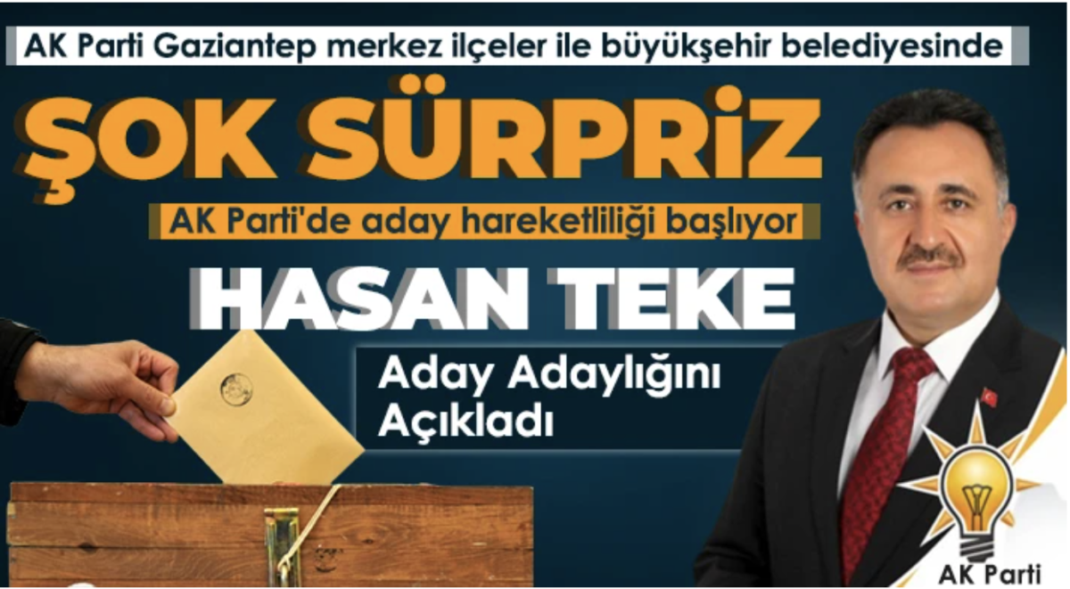 2024 yılı mart ayında yapılacak olan yerel seçimlere kısa süre kala siyaset arenası ısınmaya başladı. AK Parti Gaziantep'te sakin geçen aday adaylığı başvurularında hafta başından itibaren hareketlilik başlayacağı öğrenildi. 3 merkez ilçede yeni adaylar iddiası www.memohaber.com'un edindiği kulis bilgilerine göre ise AK Parti Genel Merkezi'nin Gaziantep'te büyük bir sürprize imza atarak merkez Şehitkamil ve Şahinbey ilçeleri ile Büyükşehir Belediyesinde tamamen yeni adaylarla yola devam edeceği iddia edildi. Cumhurbaşkanı Recep Tayyip Erdoğan'ın da kentte partiye küskünleri barıştırmak ve yeni bir heyecan getirmek için bu ihtimali desteklediği bildirildi. Hafta başından itibaren aday hareketliliği bekleniyor AK Parti'nin Gaziantep merkez Şehitkamil ve Şahinbey ilçeleri ile Büyükşehir Belediyesinde yeni adaylarla yola devam edeceği iddiası siyaset arenasını iyiyden iyiye ısıtırken kentte hafta başından itibaren sürpriz isimlerin Büyükşehir, Şehitkamil ve Şahinbey için belediye başkan aday adaylığı için başvuruda bulunacağı öğrenildi. AK Parti Nizip Belediye Başkan aday adaylığı için 1, Nurdağı Belediye Başkan aday adaylığı için ise 2 kişinin başvuru yaptığı ancak önümüzdeki günlerde bu sayının tüm ilçelerde artacağı da öne sürüldü. Hasan Teke aday adaylığını açıkladı Öte yandan önceki dönem AK Parti Şahinbey İlçe Başkanı Av. Hasan Teke, Şahinbey Belediye Başkan aday adayı olduğunu açıkladı. Teke, Pazartesi günü saat 12.00'de AK Parti Gaziantep İl Başkanlığına başvuruda bulunacağını ve tüm destekçilerini beklediğini açıkladı. Teke'nin adaylık konusunda iddialı olduğu da öğrenildi.