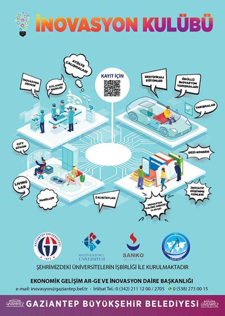 Gaziantep Üniversitesi (GAÜN), Hasan Kalyoncu Üniversitesi (HKÜ), SANKO Üniversitesi ve Gaziantep İslam Bilim ve Teknoloji Üniversitesi (GİBTÜ) içinde faaliyet gösteren İnovasyon Kulübü’ne üye öğrencilerin “Bir Fikrim Var” Projesi’ne bireysel ve grup halinde katılabilecek. Başvurular, http://inovasyon.gaziantep.bel.tr/ProjeFikir adresinden alınacak.
