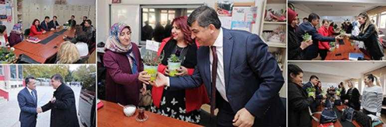 Öğretmenlerin özel günlerini tebrik eden Başkan Fadıloğlu, öğretmenlere belediyeye ait serada yetiştirilen çiçeklerden armağan etti.