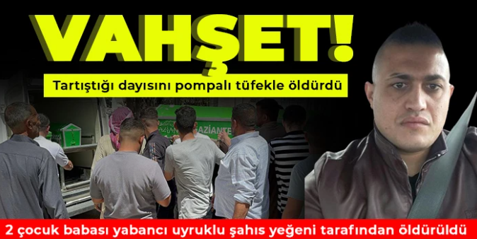 Gaziantep'te yaşayan yabancı uyruklu Abdulmecid Alalwı tartıştığı yeğeni tarafından pompalı tüfek ile 3 el ateş edilerek öldürüldü.