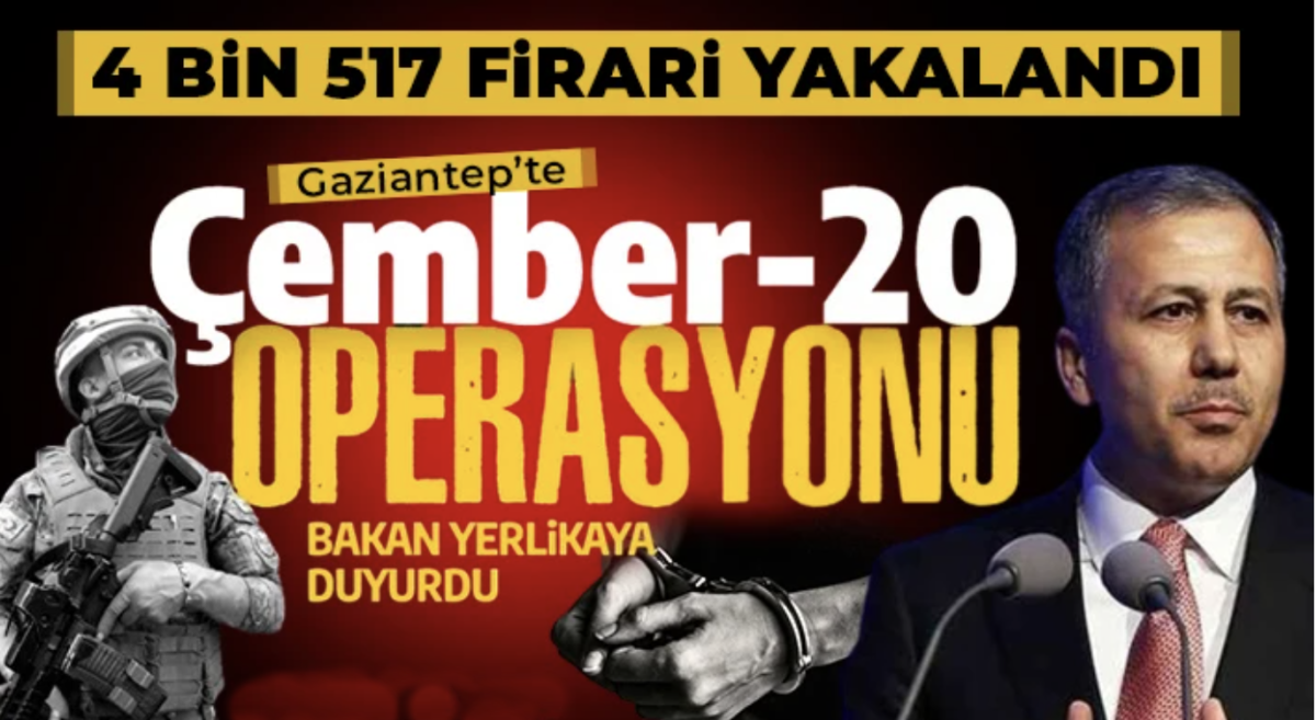 Bakan Yerlikaya'nın sosyal medya hesabından yaptığı açıklamaya göre, 81 ilde son 5 günde çeşitli suçlardan aranan kişilere yönelik "Çember-20" operasyonları düzenlendi. Operasyonlarda, hakkında yakalama kaydı bulunan 4 bin 517 firari gözaltına alındı. Bu kişilerden 4 bin 489'unun 5 yıla kadar, 19'unun 5-10 yıla kadar, 9'unun ise 10 yıl ve üzeri süredir arandığı tespit edildi. Yakalananlardan 731'inin narkotik, 698'inin hırsızlık, 458'inin kaçakçılık ve organize, 454'ünün dolandırıcılık, 180'inin yağma, 131'inin cinsel, 124'ünün adam öldürme ve 39'unun terör suçlarını işledikleri için arandığı belirlendi. Yerlikaya, operasyona ilişkin şu ifadeleri kullandı: "Aziz milletimizin bilmesini isterim ki firari suçluların sokaklarımızda gezmelerine asla izin vermeyeceğiz. Ailelerimizin huzurunu kaçırmalarına müsaade etmedik, etmeyeceğiz. İl Jandarma Komutanlıkları, İl Emniyet Müdürlükleri ve Sahil Güvenlik Komutanlığımızca 81 il genelinde arama kaydı olanlara yönelik gerçekleştirilen operasyonlarda bu şahıslar yol aramalarında, ev ve iş yerleri baskınlarında, kimlik kontrollerinde yakalanıp adalete teslim edildi. Operasyonları yöneten valilerimizi, kaymakamlarımızı, İl Jandarma Komutanlarımızı, İl Emniyet Müdürlerimizi, Sahil Güvenliğimizi ve operasyonlara katılan polislerimizi, jandarmalarımızı tebrik ediyorum. Milletimizin duası sizinle."