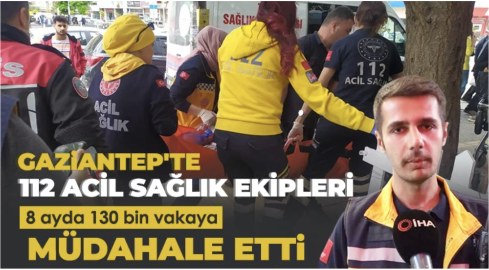 Gaziantep'te 112 Acil Sağlık ekipleri, 2023 yılının ilk 8 ayında toplam 130 bini aşkın vakaya müdahale etti. Günlük ortalama bin çağrı alan 112 Acil Sağlık ekipleri, bu çağrılardan vakaya dönüşen 600-700 civarında olaya ilk müdahaleyi yaparak ilgili sağlık kuruluşlarına ulaştırdı.