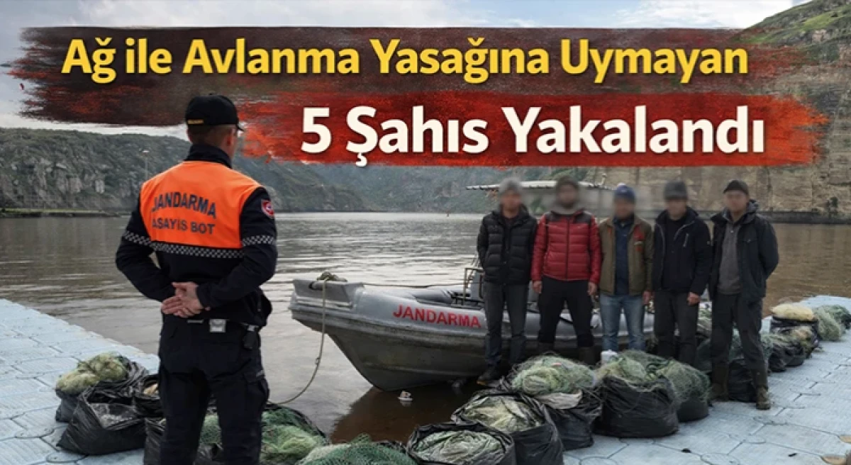 Gaziantep'te nehir üzerinde ağ ile avlanma yasağına uymayan 5 şahıs, jandarma ekiplerince suçüstü yakalandı.