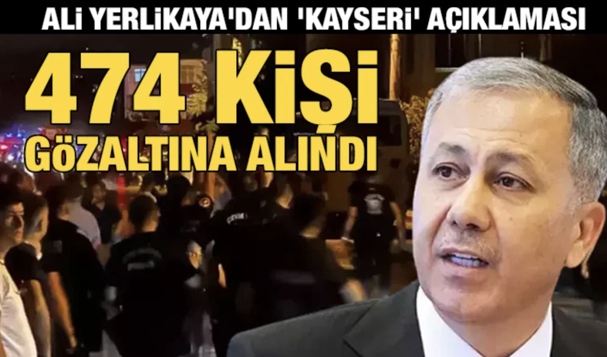 Yerlikaya, Kayseri'de başlayan olayların ardından 474 kişinin gözaltına alındığını, 2️85’inin çeşitli suçlardan kaydı olduğunu söyledi.