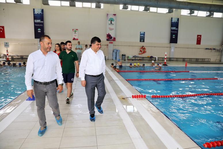Sporcu fabrikalarının yıllardır en başarılı örnekleri arasında yerini alan Şehitkamil Belediyesi Alleben Yüzme Havuzları, yaz spor okulu döneminde farklı gün ve seans seçenekleriyle binlerce sporcu öğrenciye eğitim vermeyi sürdürüyor. Alleben 1 ve Alleben 2 Yüzme Havuzlarında verilen temel eğitimler ve yeni rekorlar için atılacak ilk kulaçlar sonrasında yüzme, sualtı sporları ve sutopu branşlarında müsabık olarak yarışma fırsatı elde edecek olan sporcular, uzman antrenörler gözetiminde kulvarlarda yoğun bir antrenman sürecinden geçiyor. Alleben 2 Yüzme Havuzunda gerçekleştirilen çalışmaları ziyaret eden Şehitkamil Belediye Başkanı Rıdvan Fadıloğlu, önce altın kulaçlara moral verdi, akabinde sporcu velileriyle eğitim süreci ve su sporları alanında gerçekleştirilen faaliyetleri değerlendirdi.
