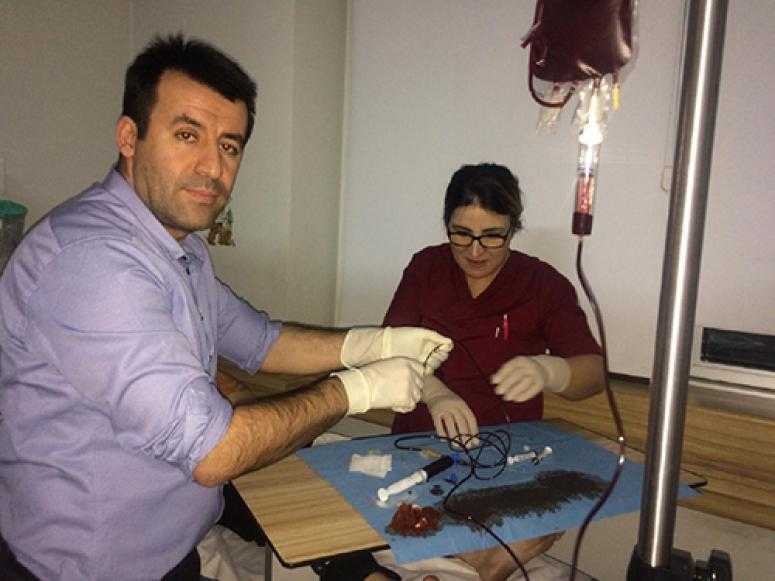 Güneydoğu Anadolu Bölgesi'ndeki riskli gebeliklerin başında kan uyuşmazlığının geldiğini belirten Doç. Dr. Tuncay Yüce, kan uyuşmazlığı olan bebeklere anne karnında kan transfüzyonu yaptıklarını söyledi. İki yılda yaklaşık 35 bebeğe anne karnında toplam 140 kan transfüzyonu yaptıklarını belirten Doç. Dr. Yüce, Güneydoğu Anadolu Bölgesinin yanında, batıda ki büyük kentlerden de kliniklerine hasta geldiğini söyledi.