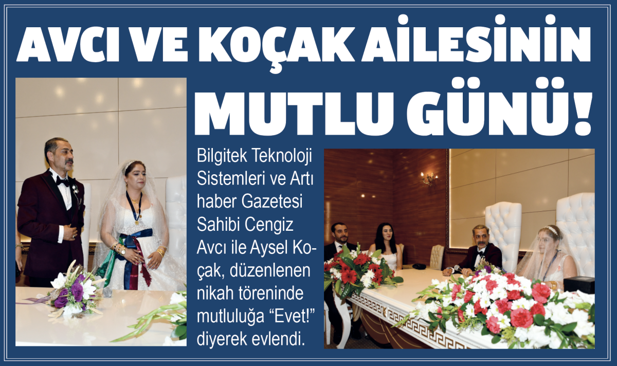 Bilgitek Teknoloji Sistemleri ve Artı haber Gazetesi Sahibi Cengiz Avcı ile Aysel Koçak, düzenlenen nikah töreninde mutluluğa “Evet!” diyerek evlendi.