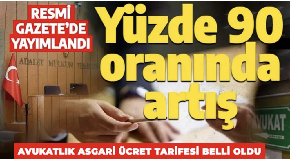 Yeni avukatlık asgari ücret tarifesi, Resmi Gazete'de yayımlanarak yürürlüğe girdi.