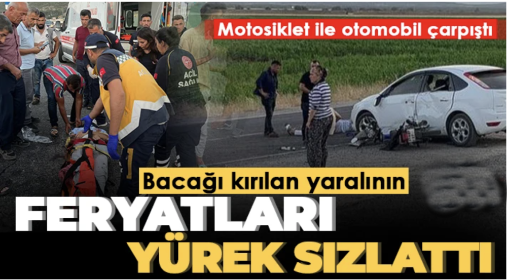 Gaziantep'tin İslahiye ilçesinde motosiklet ile otomobilin karıştığı kazada 2 kişi yaralandı. Kazada bacağı kırılan motosiklet sürücüsü Ömer Faruk T.'nin yerde ağrıdan kıvranması ve defalarca 'ah, bacağım, bacağım kırık' diye bağırması ise yürek sızlattı.
