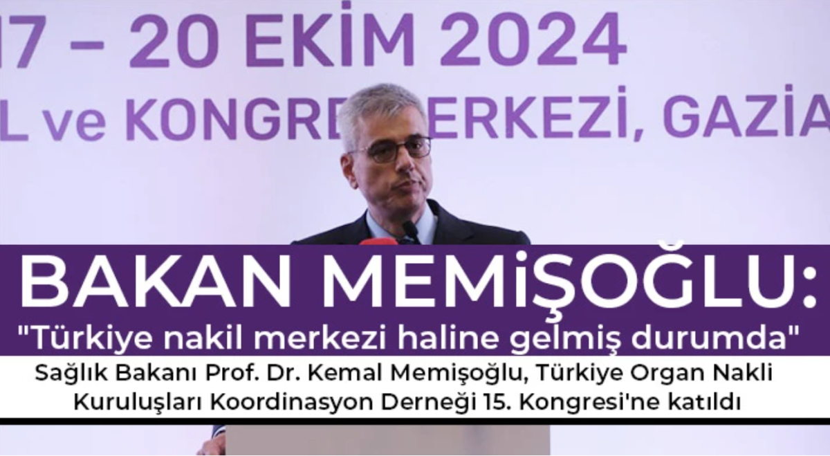 Gaziantep'te, Türkiye Organ Nakli Kuruluşları Koordinasyon Derneği 15. Kongresi'nde konuşan Sağlık Bakanı Prof. Dr. Kemal Memişoğlu, organ naklinin önemine vurgu yaparak, "Türkiye nakil merkezi haline gelmiş durumda" dedi.