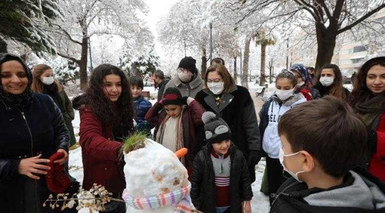 Park ve bahçelerdeki banklardan kaldırımlara kadar kontrol yapan Şahin, karla mücadelenin özveriyle yürütüldüğünü gördükten sonra ise karın keyfini çıkardı. Eldivenlerini giyen Şahin, Celal Doğan Parkı'nda bulunan çocuklar, aileleri ve polis ekipleri ile kar topu savaşı yaptı. Çocuklar ve polislerle doyasıya kar topu oynayan Başkan Şahin, yapılan bir kardan adamı da dikkatlice izledi. Şahin, alanda bulunan bir çocuk tarafından kardan adamın yapıldığını görünce ise çocuğa tablet sözü verdi.