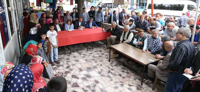 Ziyaretinin ilk durağı olan Üçoklar Mahalle Muhtarlığında yeniden muhtar seçilen Mehmet Yeltekin’i tebrik etti, mahallenin eksiklikleri hakkında bilgi aldı. Şahin, daha sonra Mücahit Eşref Caddesi esnafını ziyaret etti.