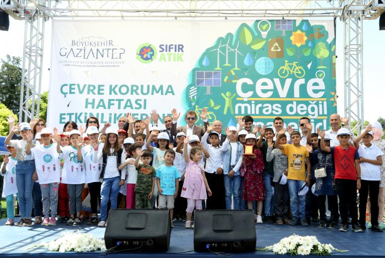 Büyükşehir Belediyesi ile Gaziantep Çevre ve Şehircilik İl Müdürlüğü’nün işbirliğinde organize edilen programın açışında konuşan Gaziantep Büyükşehir Belediyesi Genel Sekreteri Sezer Cihan, geleceğin daha sağlıklı ve temiz olmasının gençlerin bilinçlenmesinden geçtiğini belirterek, “Çevre açısından bakıldığında bir atık üretiyoruz bir de kaynak tüketiyoruz.  Evde üretilen atıklar ve doğaya saldığımız maddelerle çevre kirliliği üretiyoruz, doğada kıt olarak bulunan doğal kaynakları belediye ve kentteki tüm STK temsilcilerle birlikte korumak için el birliğiyle çalışıyoruz. Doğayı kirletici atıkları, çöp depolama alanına gidecek şekilde çöp kutusuna atmamız gerekiyor. İlce belediyelerimizin çöp toplama hizmeti sonunda toplanan çöpler, Büyükşehir Belediyesi’nin toplama alanlarında bertaraf ediyoruz. Hatta orada toplanan atıklardan enerji elde ediyoruz. Ancak bu şekilde geleceğimizi teminat altına alabiliriz. Bunun için çevre bilinci çok önemli, bilinç için de eğitim lazım. Gençlerin bu manada eğitilebilmesi amacıyla Milli Eğitim Müdürlüğü tarafından eğitimler veriyoruz.  İlçe belediyelerimiz evsel ayrıştırma üzerine bilinçlendirme çalışmaları yapıyor, elektronik atıklar toplanıyor, bunların yanı sıra Cumhurbaşkanı Recep Tayyip Erdoğan’ın eşi Emine Erdoğan’ın himayesinde uygulanan Sıfır Atık Projesi, ülkenin gündemine oturdu. Evdeki cam ve plastik şişelerinin bir değeri var. Büyükşehir Belediyesi tarafından şehrin belli noktalarına kurulan otomatlara atılan cam ve plastik şişeler, toplu taşıma kartlarına para olarak yükleniyor. Hem Gaziantepli, hem doğa, hem de belediye çevreye duyarlı bir iş yapmış oluyor, herkesin kazanacağı güzel bir uygulama” dedi. Gaziantep Çevre ve Şehircilik İl Müdürü Hasan Alan ise, Çevre Koruma Haftası etkinliklerinde Sıfır Atık Projesini tema olarak seçtiklerini bildirdi. Sıfır atığın, atıkların kaynağından ayrıştırılarak dönüşüme gönderilmesi olarak tanımlandığını aktaran Alan, plastik, cam, metal, kağıt ve organik atıkların maddi değerinin olduğunu söyledi. Sıfır atık projesinin başarıya ulaşabilmesi için ailelerin ve gençlerin duyarlılığının esas alacağını sözlerine ekleyen Alan, özellikle büyükşehir ve ilçe belediyelerinin hassasiyetiyle projenin iki yıl içerisinde önemli bir noktaya geldiğini kaydetti. Konuşmaların ardından, Sezer Cihan ve protokol, stantları gezdi. Çevreye duyarlı çalışmalarla farkındalık oluşturan Zeynep Gençten Anaokulu, Bülbülzade Abdullah Edip İlkokulu ve Nizip Hatice Kamil Pekmez Ortaokulu’na teşekkür plaketi verildi.