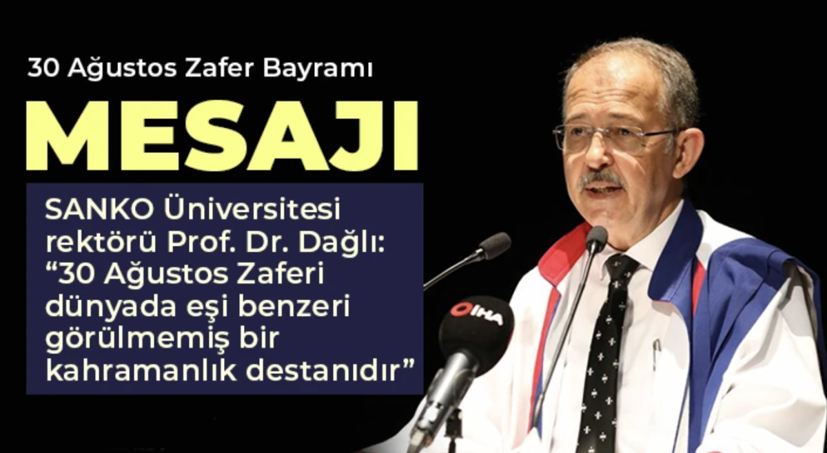 SANKO Üniversitesi Rektörü Prof. Dr. Güner Dağlı, 30 Ağustos Zafer Bayramı dolayısıyla mesaj yayımladı. Prof. Dr. Güner Dağlı, “30 Ağustos Zaferi, dünyada eşi benzeri görülmemiş bir kahramanlık destanıdır” dedi.
