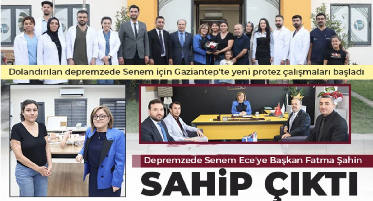 Hatay'da 650 bin liraya ikinci el protez bacak satılarak dolandırılan depremzede Senem Ece Mazı'ya Gaziantep Büyükşehir Belediye Başkanı Fatma Şahin sahip çıktı. Gaziantep'e gelerek Şahin ile buluşan mağdur Senem Ece Mazı için Ortez-Protez Merkezi'nde yeni protez çalışmaları başladı. Senem Ece'nin yeni protezine 10 gün içerisinde kavuşacağı öğrenildi.