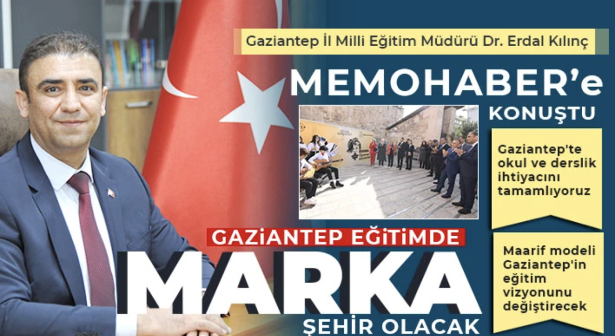 "Gaziantep İl Milli Eğitim Müdürü Dr. Erdal Kılınç, kent genelinde yürütülen kapsamlı eğitim çalışmalarını Memohaber Genel Yayın Yönetmeni Mehmet Taşçı'ya değerlendirdi."