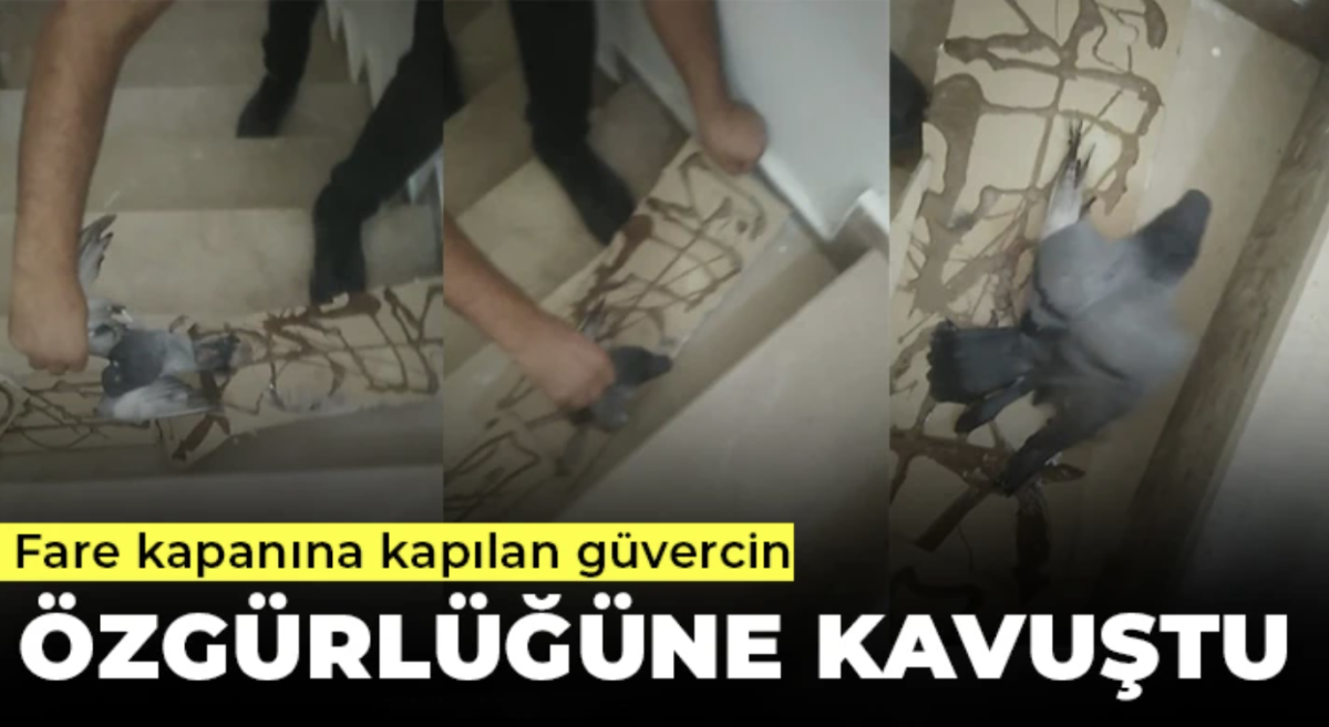 Gaziantep'in Yavuzeli ilçesinde yavru güvercin, bir evin çatısındaki yapışkanlı fare kapanına yapıştı. Durumu fark eden duyarlı bir vatandaş, güvercinin yardımına koştu. Fare kapanına yapışan güvercin, duyarlı vatandaş tarafından kurtarıldıktan sonra tüyleri temizlenerek yıkandı. Bitkin düşen güvercin, su ve yem verildikten sonra tekrar gökyüzüne bırakılarak özgürlüğüne kavuşturuldu.