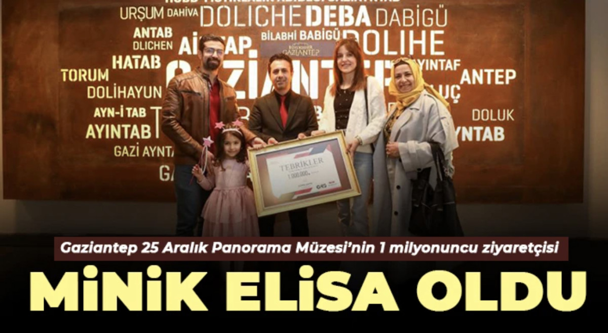 Gaziantep Büyükşehir Belediyesi tarafından Gaziantep’in düşman işgalinden kurtuluşunun 100’üncü yılında yapımı tamamlanarak hizmete açılan 25 Aralık Kahramanlık Panoraması ve Müzesi’nin 1 milyonuncu ziyaretçisi minik Elisa Uslu oldu.