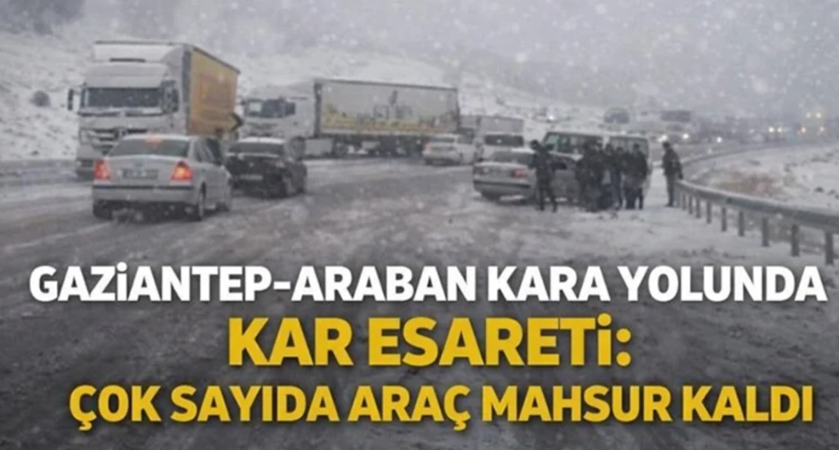 Gaziantep-Araban kara yolunda kar esareti: Çok sayıda araç mahsur kaldı