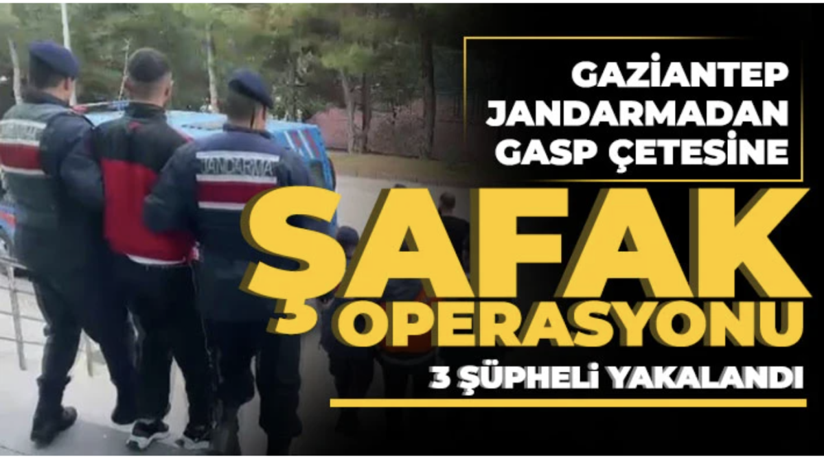 Gaziantep’te İl Jandarma Komutanlığı adli makamların koordinesinde 26 Kasım 2023 tarihinde suç işlemek hedefiyle örgüt kurma suçuyla mücadeleye yönelik 3 ikamet ve 1 iş yerine şafak operasyonu düzenledi. Düzenlenen operasyonda 1 adet tabanca, 1 adet şarjör, 3 adet cep telefonu ve sim kartı ele geçirildi. Diğer yandan gasp ve yağma suçundan 4 şüpheli tespit edilirken şafak operasyonuyla 3'ü yakalanarak gözaltına alındı. Yakalanan şahıslardan 2'si adli mercilerce tutuklanarak cezaevine gönderildi. Diğer şüpheli ise serbest bırakıldı.