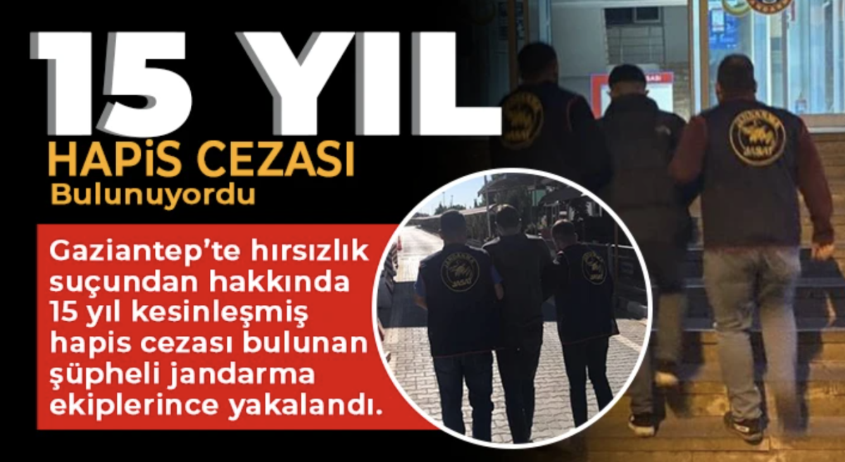 Gaziantep’te hırsızlık suçundan hakkında 15 yıl kesinleşmiş hapis cezası bulunan şüpheli jandarma ekiplerince yakalandı.