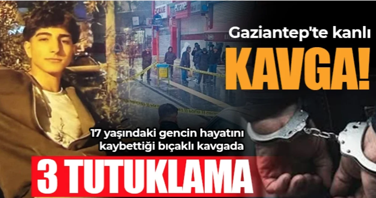 Gaziantep'te 17 yaşındaki gencin hayatını kaybettiği, 1 gencin de ağır yaralandığı bıçaklı kavgayla ilgili gözaltına alınan 3 kişi tutuklandı.