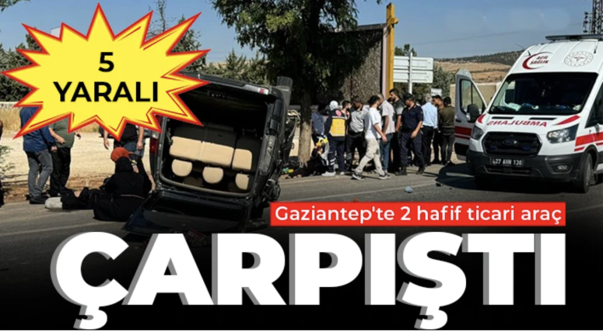 Gaziantep'te 2 hafif ticari aracın çarpışması sonucu araçlardan biri ters döndü. Kazada ters dönen araçta bulunan 5 kişi yaralandı.