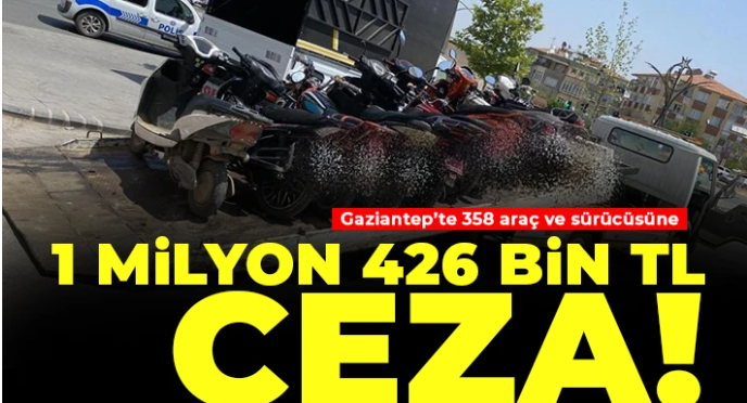 Gaziantep’te bayram tedbirleri kapsamında yapılan denetimlerde 358 araç ve sürücüsüne 1 milyon 426 bin 97 TL cezai işlem uygulandı.