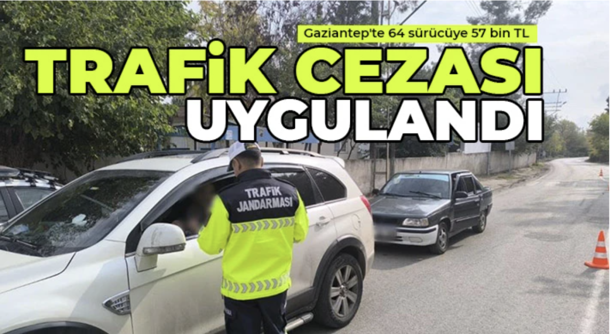 Gaziantep'te jandarma ekiplerince yapılan trafik denetimlerinde 64 sürücüye toplam 57 bin 340 TL trafik idari para cezası uygulandı.