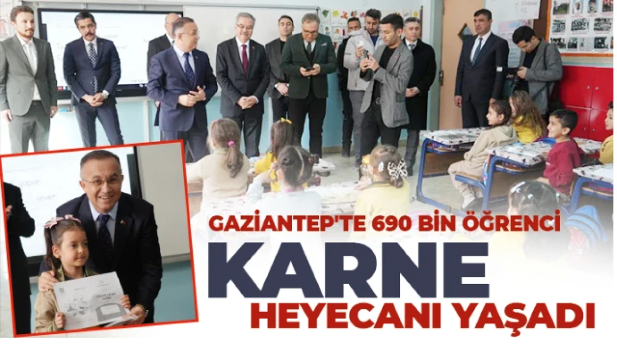 Türkiye'nin dört bir yanında olduğu gibi Gaziantep'te de karne heyecanı yaşandı. Kentte bin 744 eğitim kurumunda 690 bin öğrenci karne alarak yarıyıl tatiline girdi. Şehitkamil ilçesi Şehit Nafi Kıvanç İlkokulu'nda düzenlenen karne dağıtım töreninde ise ilkokul 1. sınıf öğrencilerine karneleri Gaziantep Valisi Kemal Çeber, Gaziantep İl Milli Eğitim Müdürü Önder Arpacı ve diğer kurum müdürleri verdi.