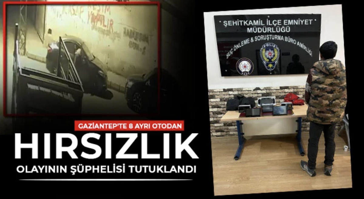 Gaziantep Emniyet Müdürlüğüne bağlı Şehitkamil İlçe Emniyet Müdürlüğü ekipleri, farklı zamanlarda meydana gelen otodan hırsızlık olayları ile ilgili çalışma yaptı. Yapılan çalışmalar neticesinde, 8 farklı otodan hırsızlık olayını gerçekleştirdiği tespit edilen şüpheli şahıs yakalandı. Şüphelinin adresinde yapılan aramalarda 8 adet oto teybi ile 3 adet akü ele geçirildi. Hırsızlık anları güvenlik kameralarına da yansıyan şüpheli şahıs, sevk edildiği adli makamlarca tutuklandı.