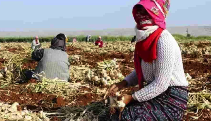 Hasat sürecinde Gaziantep ve çevre illerden gelen sekiz bin tarım işçisi yoğun bir çalışma içerisine giriyor. Dip dalgasıyla toprağı sürüp sarımsakları toplayan işçiler, sabah erken saatlerinde başladıkları çalışmalarını güneşin batışına kadar sürdürüyorlar. Hasat edilen sarımsakları hazırlama ve depolama işlemleri de onların eliyle gerçekleşiyor.