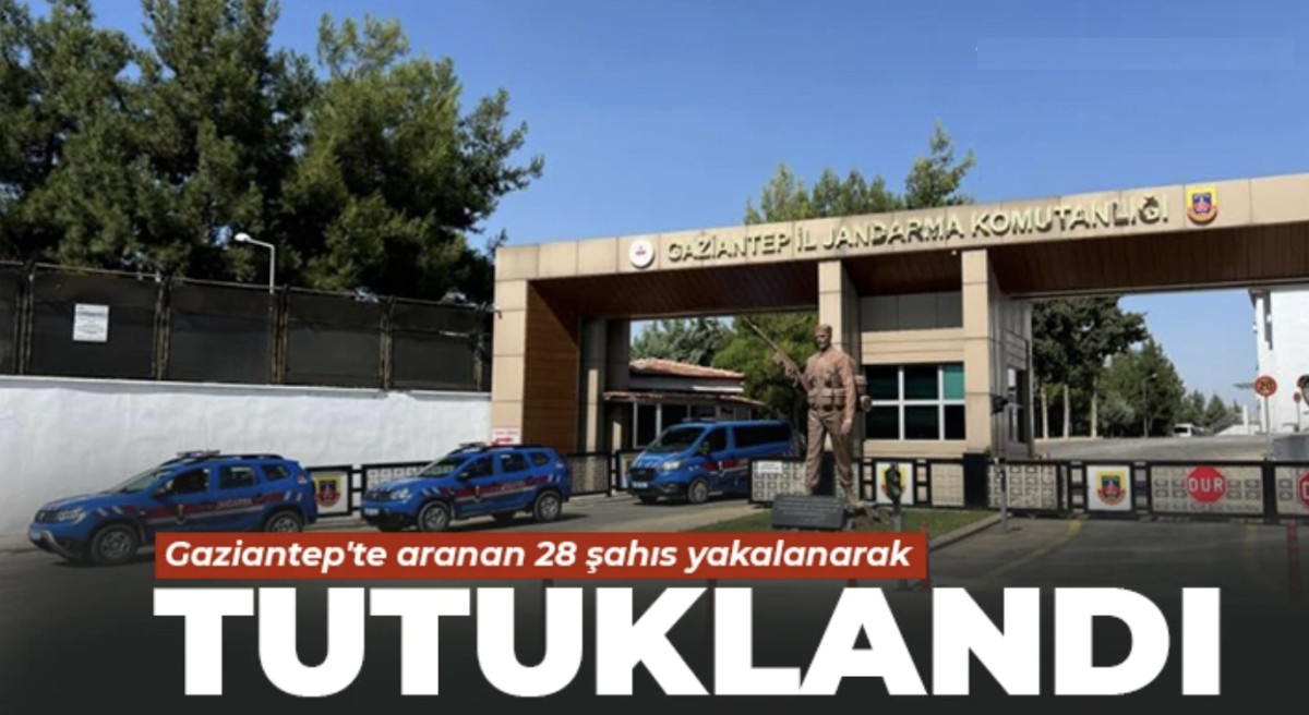 Gaziantep İl Jandarma Komutanlığı ve Cumhuriyet Başsavcılığı koordinesinde aranan şahısların yakalanmasına yönelik çalışma yapıldı. Şahinbey, Şehitkâmil, Nizip, Nurdağı ve Oğuzeli ilçelerinde son 2 hafta içerisinde yapılan çalışmalar neticesinde hırsızlık, dolandırıcılık, narkotik, yağma, kasten öldürme, tehdit ve cinsel saldırı gibi suçlardan aranan 28 şahıs yakalandı. Şüpheli şahısların tamamı, sevk edildiği adli makamlarca tutuklanarak cezaevine gönderildi.