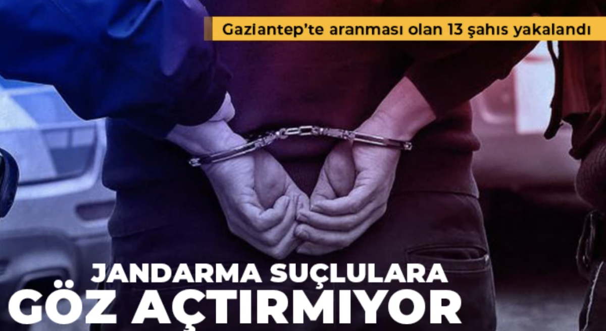 Gaziantep İl Jandarma Komutanlığı, aranan şahısların yakalanmasına yönelik son bir hafta içerisinde il genelinde Cumhuriyet Başsavcılığı koordinesinde çalışma yapıldı. Yapılan çalışma neticesinde Nurdağı, Nizip, Şahinbey, Şehitkamil ve Oğuzeli ilçelerinde narkotik, hırsızlık, yağma, ruhsatsız silah taşıma, kaçakçılık, çocuğun cinsel istismarı olmak üzere toplam 13 şüpheli şahıs yürütülen titiz planlama takip ve çalışmalar sonucu yapılan operasyonlar neticesinde yakalanarak gözaltına alındı. Şüpheli şahısların tamamı sevk edildiği adli makamlarca tutuklanarak cezaevine gönderildi.