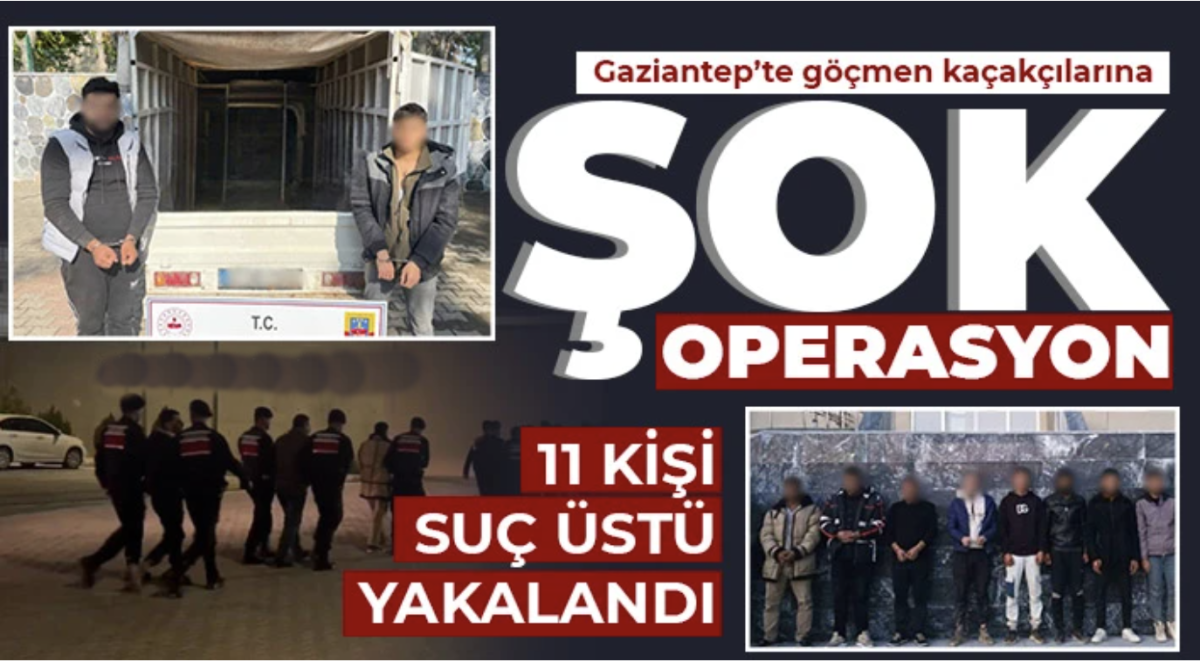 Gaziantep İl Jandarma Komutanlığınca, göçmen kaçakçılığı ve insan ticareti ile mücadele kapsamında hudut gerisinde ve il genelinde Cumhuriyet Başsavcılığı koordinesinde icra edilen operasyonlar kapsamında, Karkamış ve Oğuzeli ilçelerinde düzensiz göçmenleri Ülkemize yasadışı yollardan geçirerek farklı şehirlere sevk ettikleri esnada yapılan şok operasyonla 11 organizatör suçüstü yakalanarak gözaltına alındı. Gözaltına alınan göçmen kaçakçısı organizatörü Z.E., A.K., Y.K., T.Ö., H.E.A., T.K., A.G. H.E., A.E., T.E., ve F.E., isimli şüpheli şahıslar sevk edildiği adli makamlarca tutuklanarak cezaevine gönderilirken, olayda kullanılan araçlara ise el konuldu.