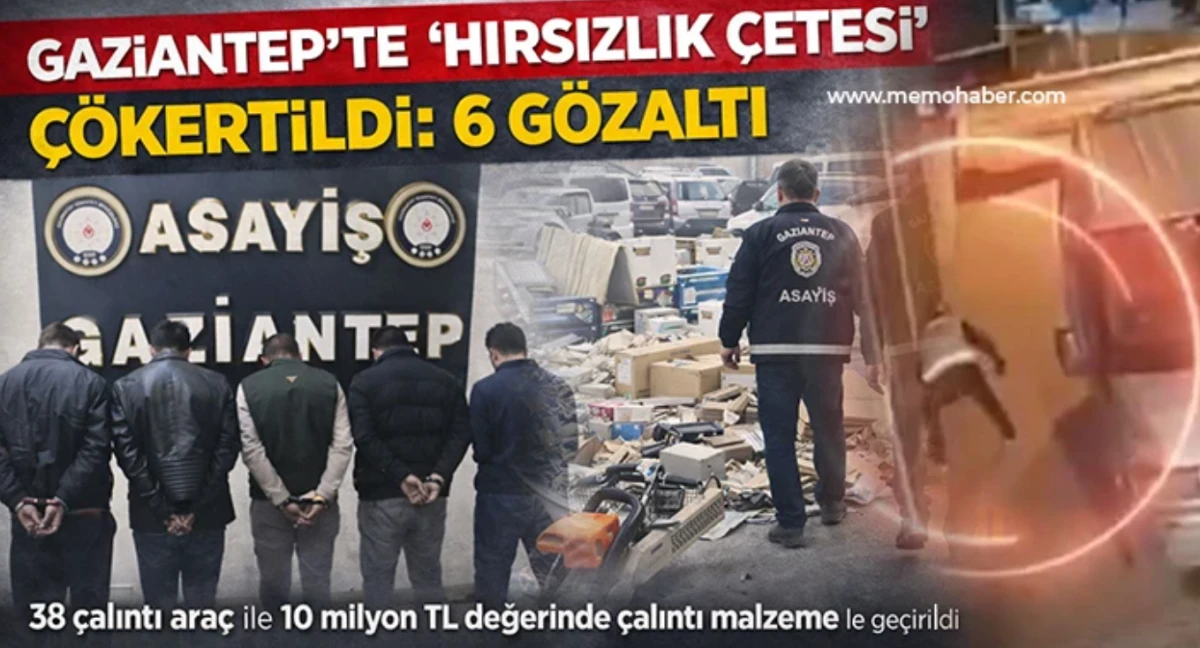 Gaziantep ve çevre illerde 114 ayrı hırsızlık olayını gerçekleştirdiği tespit edilen hırsızlık çetesi yapılan operasyonla çökertildi, 6 şüpheli gözaltına alındı. Operasyonda 10 milyon TL değerinde çalıntı eşya ile 38 adet çalıntı araç ele geçirilerek sahiplerine teslim edildi.