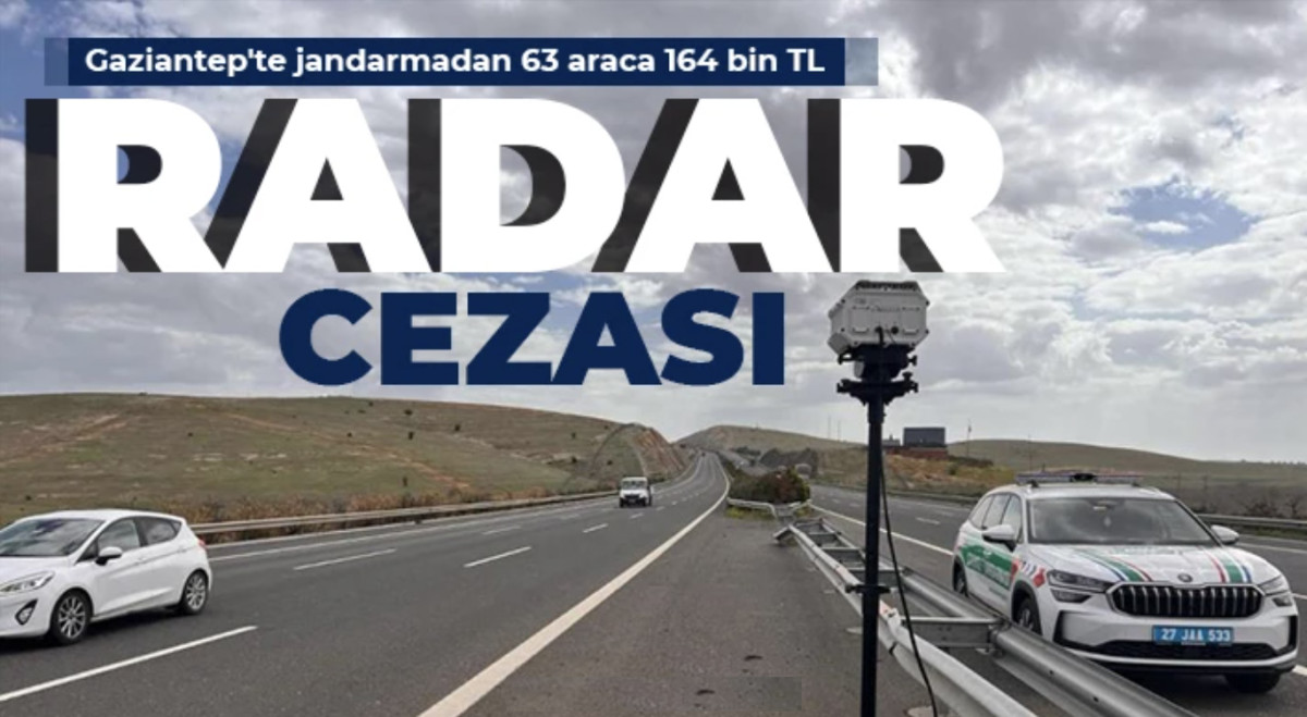 Gaziantep'te jandarma ekiplerince yapılan radar kontrollerinde 63 araç plakasına belirtilen hız sınırlarını ihlal etmekten 164 bin 726 TL trafik idari para cezası uygulandı.