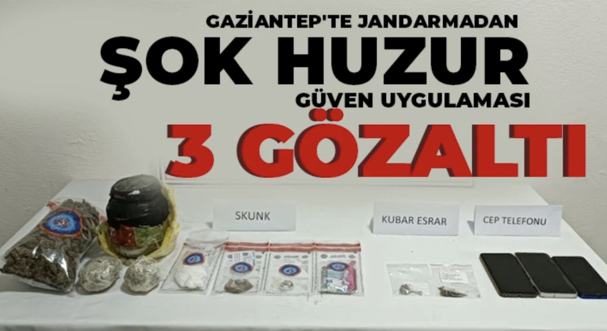 Gaziantep'te jandarmadan şok huzur güven uygulaması: 3 gözaltı